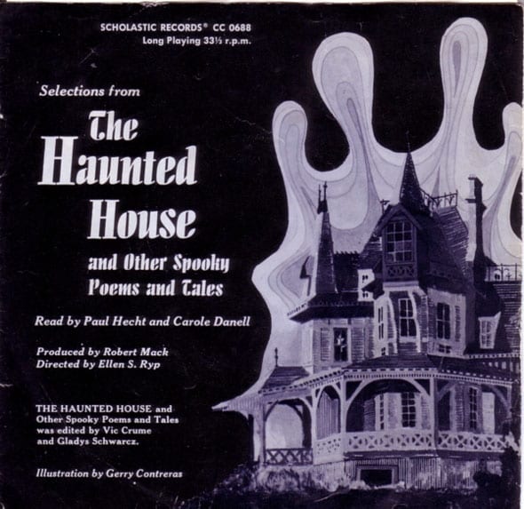 This record (which came with an accompanying book that I don’t think we had) taught young me how to be afraid of our basement. I used to sit and stare at that cover and wonder what was behind all of those windows. See that thing in the upstairs window above the porch on the left? That’s fuckin’ creepy. Or so 5-year-old-Me thought. At some point I drew eyes on all of those blobs surrounding the house to make them look like giant ghosts.