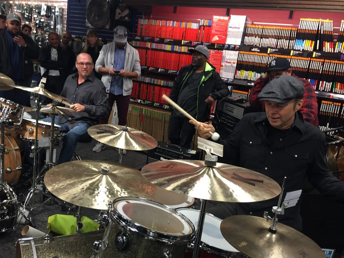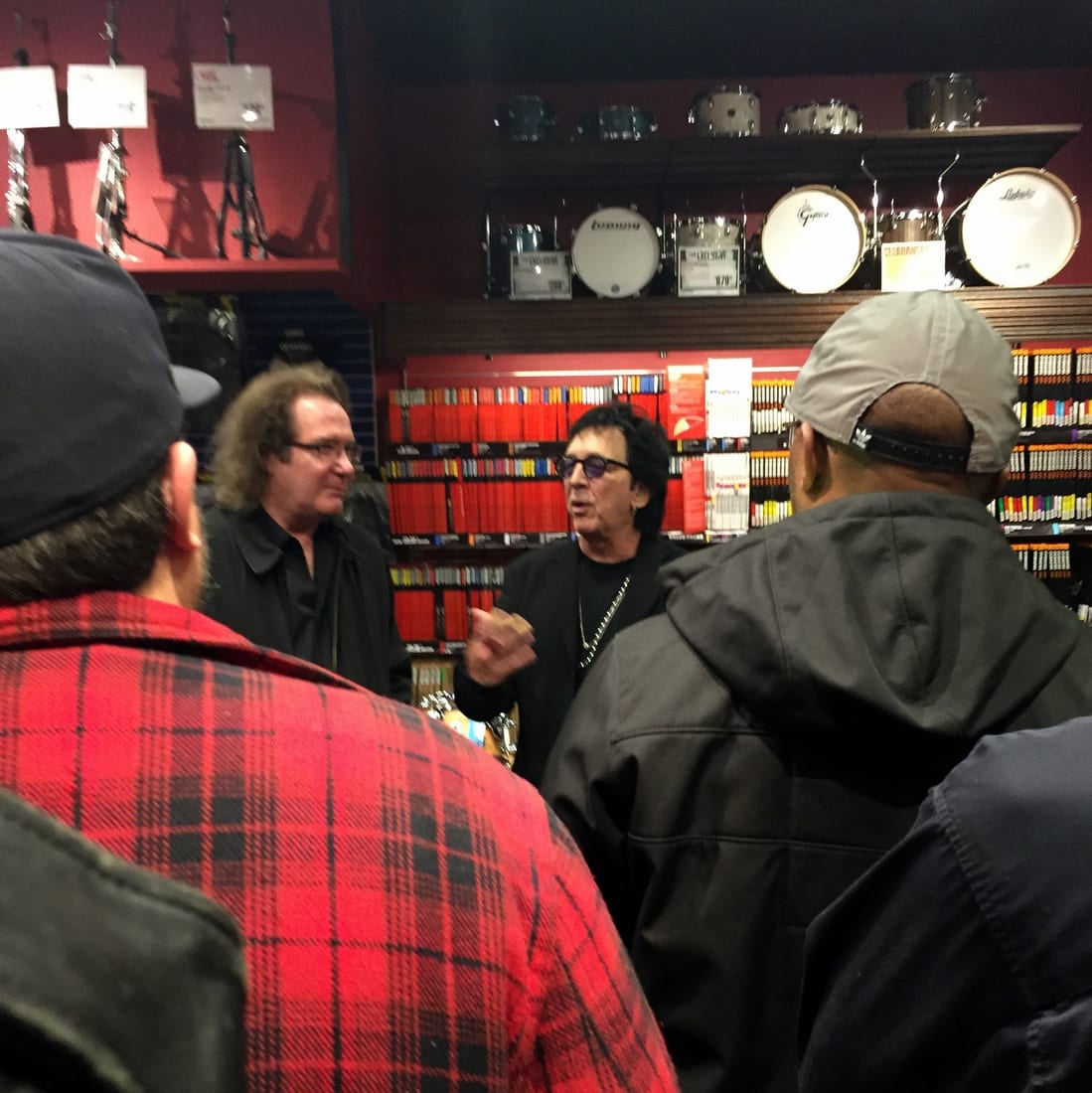 As of today, some 37 years after becoming a lifelong KISS nerd, I can cross “meet all 4 original KISS guys” off of my bucket list. I met Gene and Paul in 1994 (back when they still had a few shreds of dignity left) and Ace about a half dozen times since moving to NY in 2009. I was supposed to meet Peter at a book signing in 2012 but the store ran out of books and that’s all he was signing…. game over. 🙁 I was kind of bummed because he never does appearances, and dude is getting up there in age (70 this December) so figured I was S.O.L. in the Peter department. Fast-forward to this past Thursday when I received some Guitar Center email spam saying he was part of an upcoming DW clinic in their Union Square/NYC store. SCORE. I guess there’s a reason to be on those lists after all.