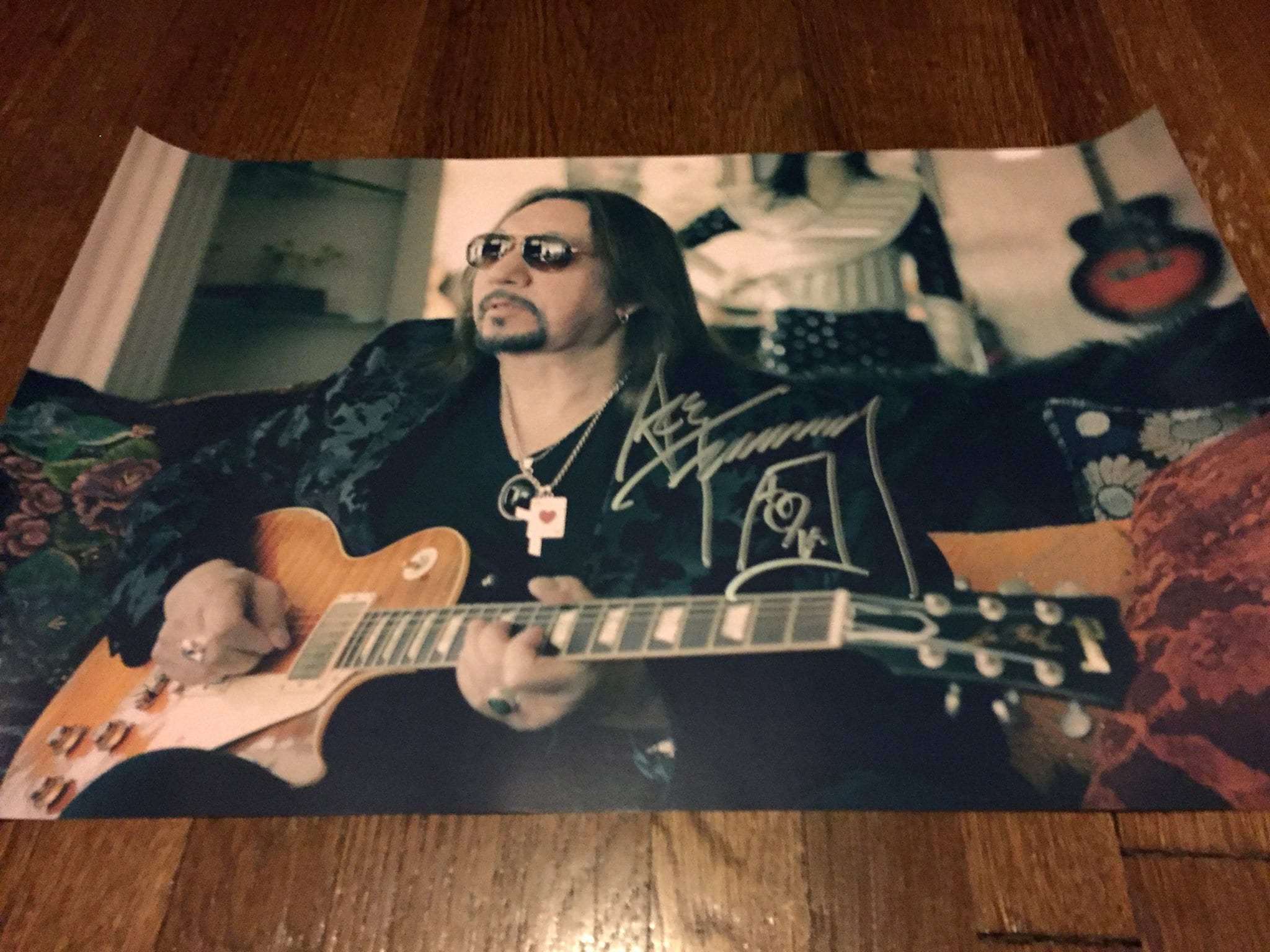 After the interview was done it was announced that Ace was going to take pictures and everyone was getting a signed 24×16 poster, but wasn’t doing autographs. That’s okay, I’ve got a signature that I carry with me 24/7 anyways. When I approached him for my photo I said “The Sharpie still hasn’t washed off!” and pointed at my autographed arm. He said “Wow, they did a really nice job on that. When did I do that?” I told him at the book signing here in NYC and flashed my unfinished Ace portrait tattoo above it at him saying “Still hoping to get this done one of these days..” It put a proud Well would you just look at that! smile on his face. The guy does countless meet-n-greets and his brain is a little fried from that and years of drug use so I don’t expect him to remember me. It’s just cool to stand next to the dude who played so many of my favorite guitar riffs and solos and say THANKS. That’s why I do these kinds of things and have Ace’s and Jeff Beck’s signatures on my arm. Not so much to be a stalker, but to recalibrate my perpetually cluttered brain and keep in close touch with my musical roots.