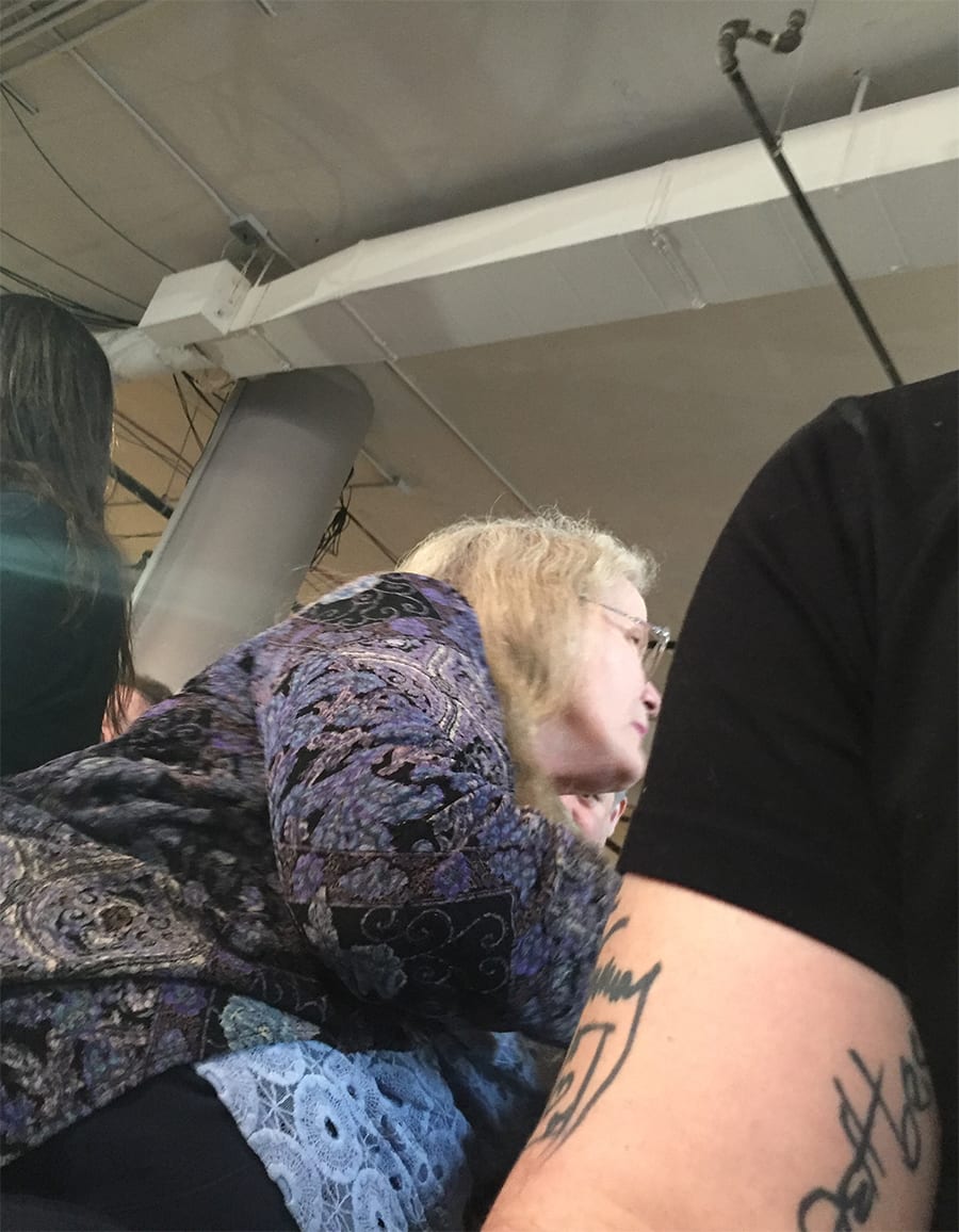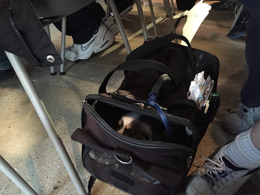 I was in point-blank earshot of the dog’s lapping. My world was slowly imploding. I thought about getting up and just standing in the back of the room but didn’t give in. My legs started nervously bouncing so I started scrolling through my phone to distract myself, pulling up the Kindle app and pretending to read. After she was done hydrating her little husband she put the carrier on the floor, took a few swigs of water, put the bottle back in her 5 gallon purse, and wiped her hands off on her pants and shirt. Mmm, just when I thought she couldn’t get any more sexy.